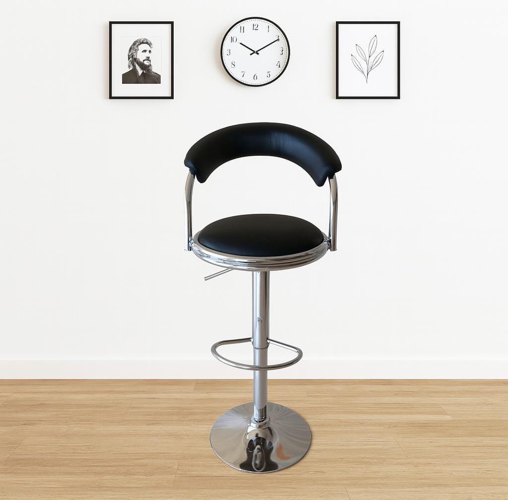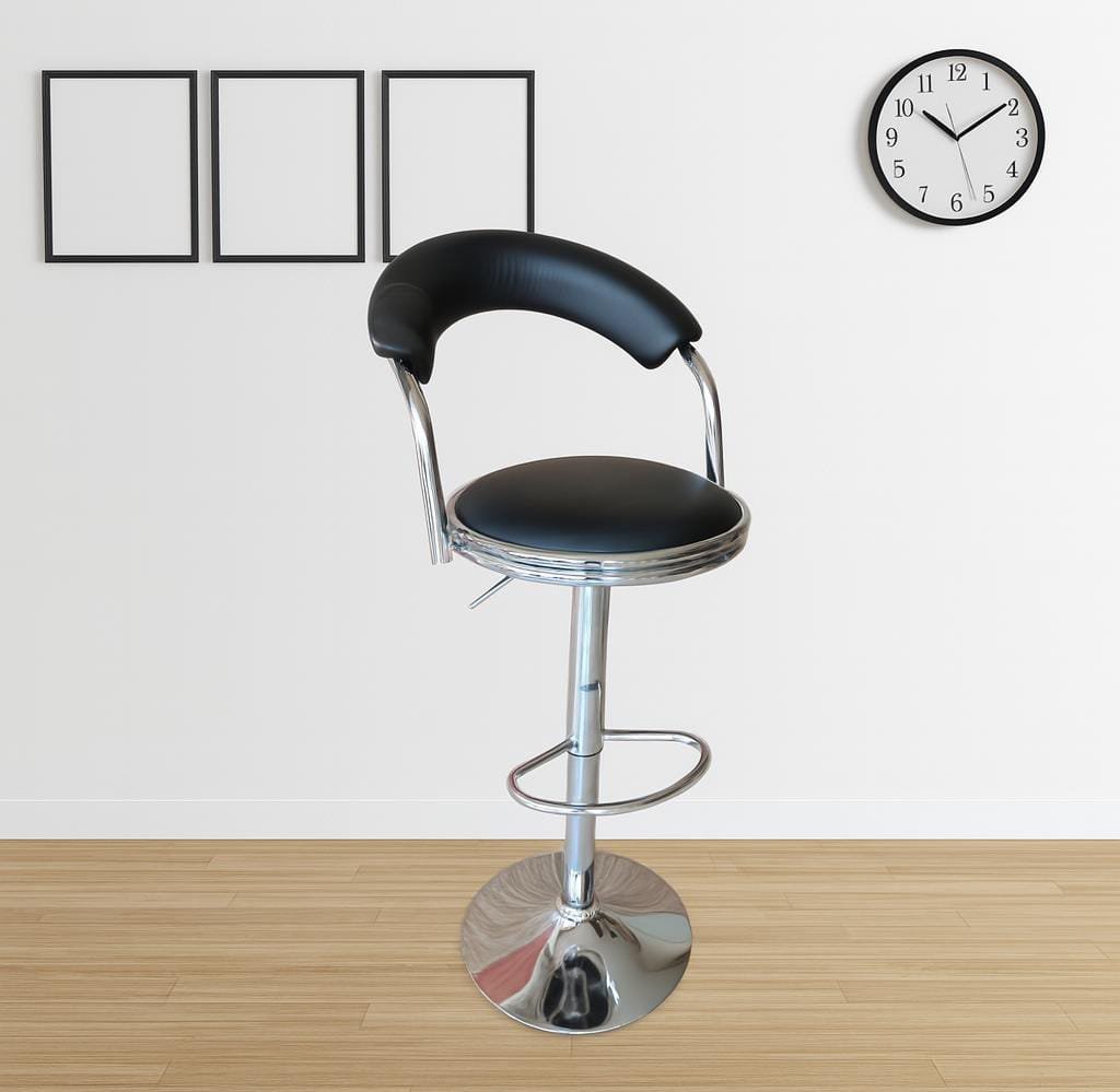 Backform Bar Chair (L47xW46xH60–110cm), sleek leatherette stool with chrome frame and padded seat for stylish comfort in kitchen or bar settings.