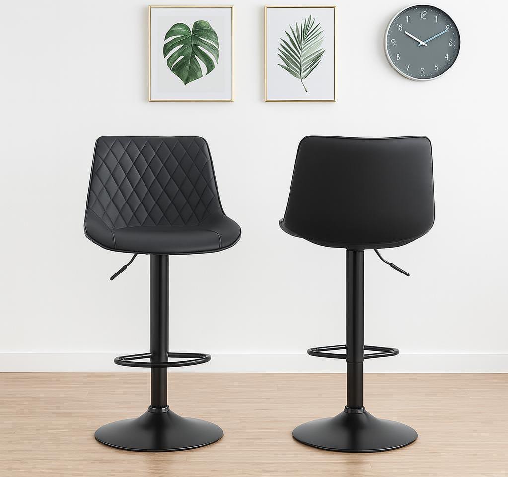 Featuring a durable black chrome stainless steel frame and a plush leatherette seat with diamond stitching, this chair adds a touch of sophistication to any space.