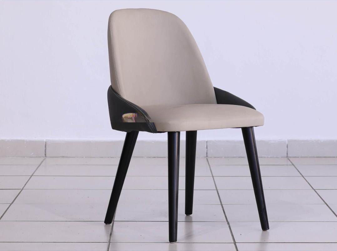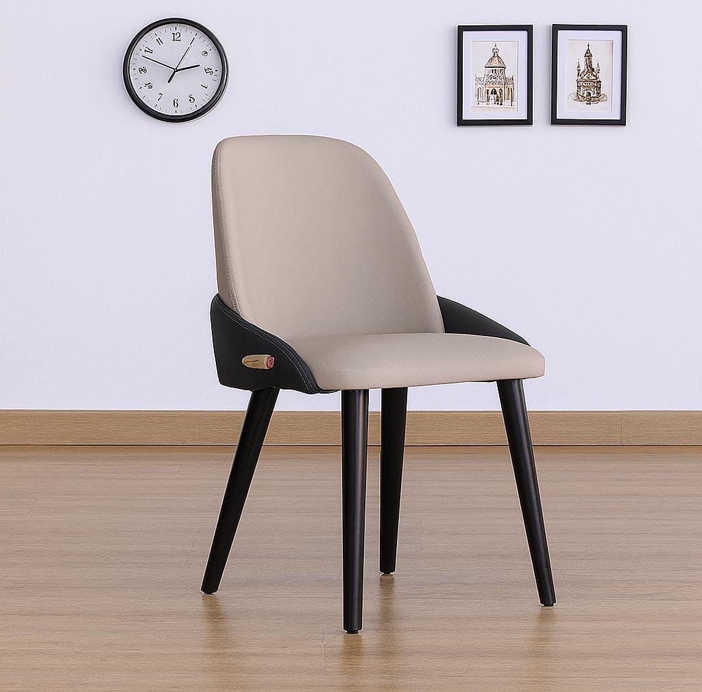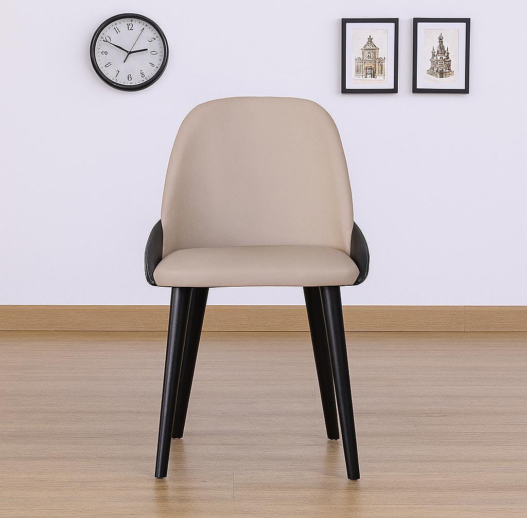 The two-tone design, with beige seating surfaces and black outer shells, creates an elegant contrast that complements a wide variety of interior décors — from modern minimalist to mid-century chic.