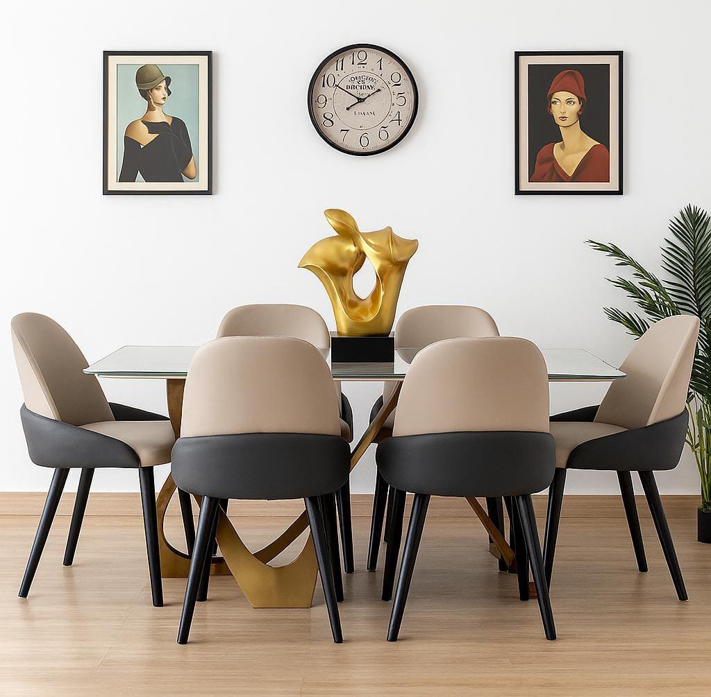 Invest in lasting quality, standout design, and timeless elegance with the Trio-Dining Table + 6 Metz Chairs — where contemporary craftsmanship meets everyday luxury.