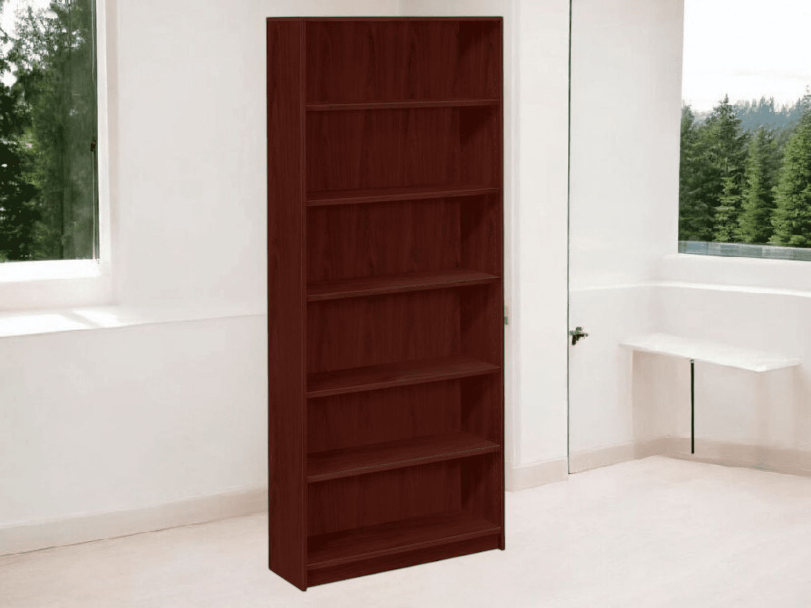 Shop now and experience the beauty and functionality of the Desny Dark Walnut 6-Shelf Bookcase!