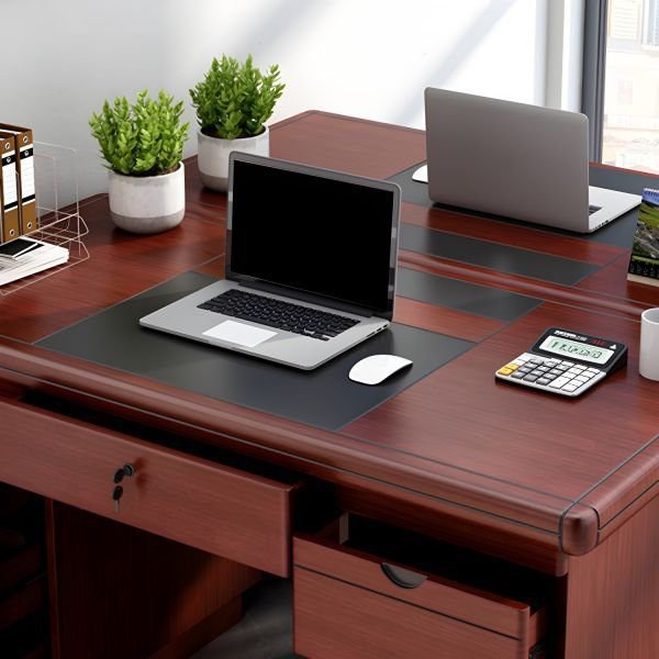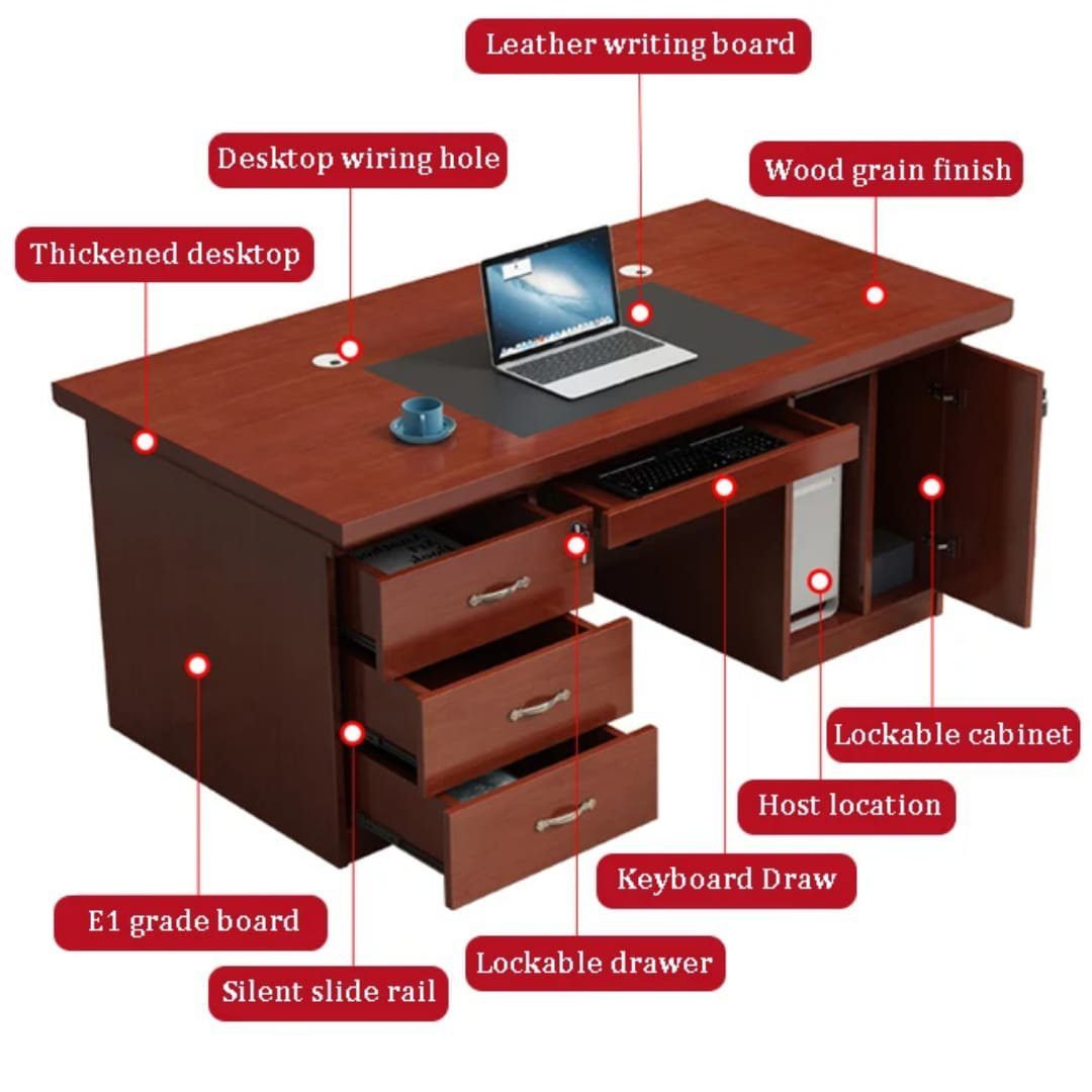 This 1.4m Traditional Executive Desk is a sturdy and stylish piece of furniture suitable for both home and office use. It features a sleek red mahogany finish and offers ample storage space with three drawers, a keyboard holder, and a CPU drawer.
