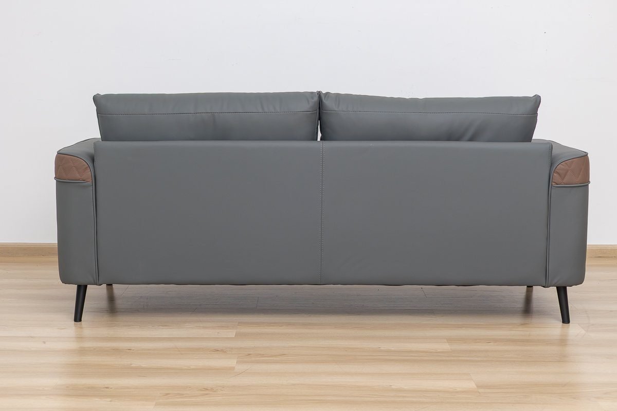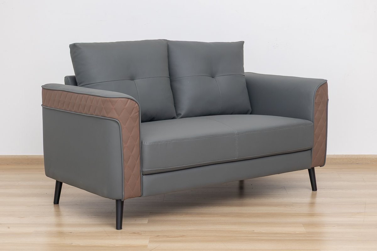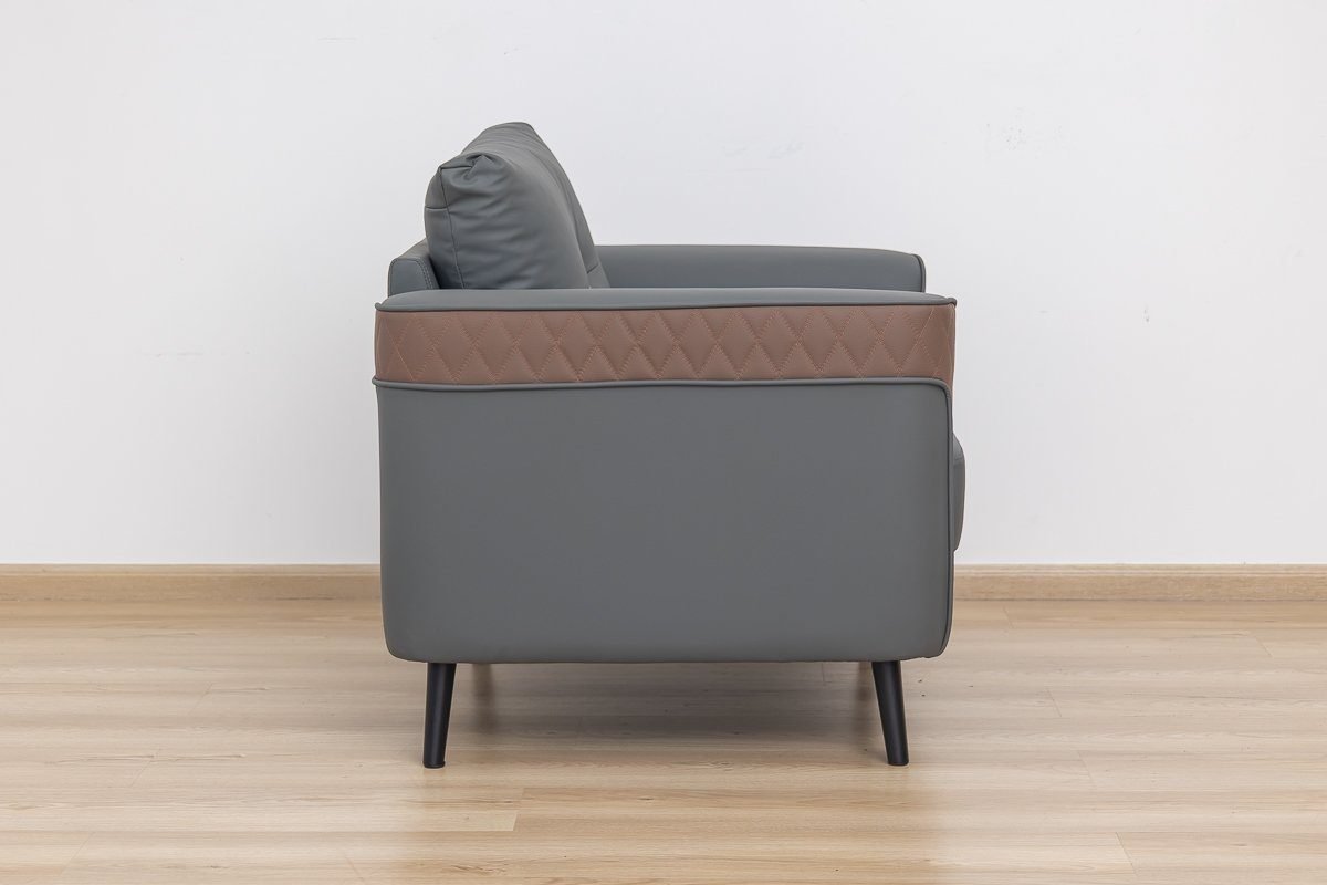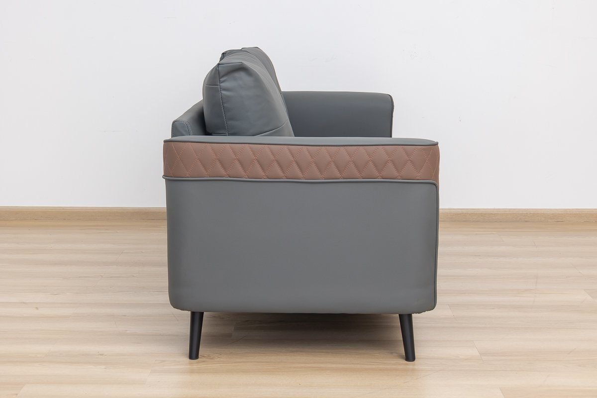 The contrasting grey and brown tones add a touch of modern elegance, making it a stylish office sofa that stands out.