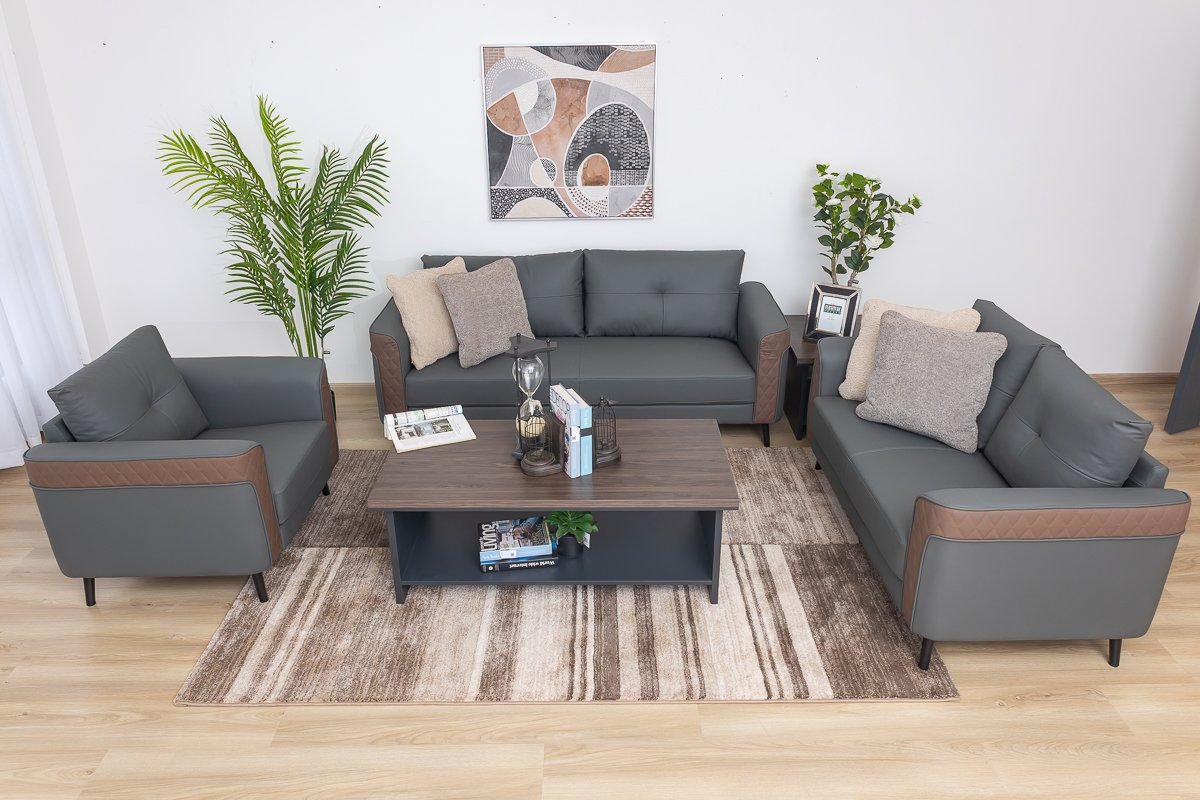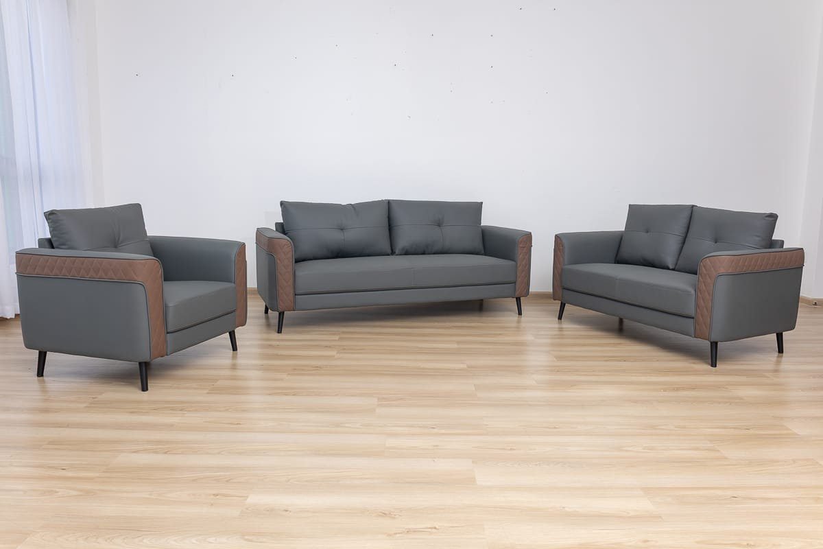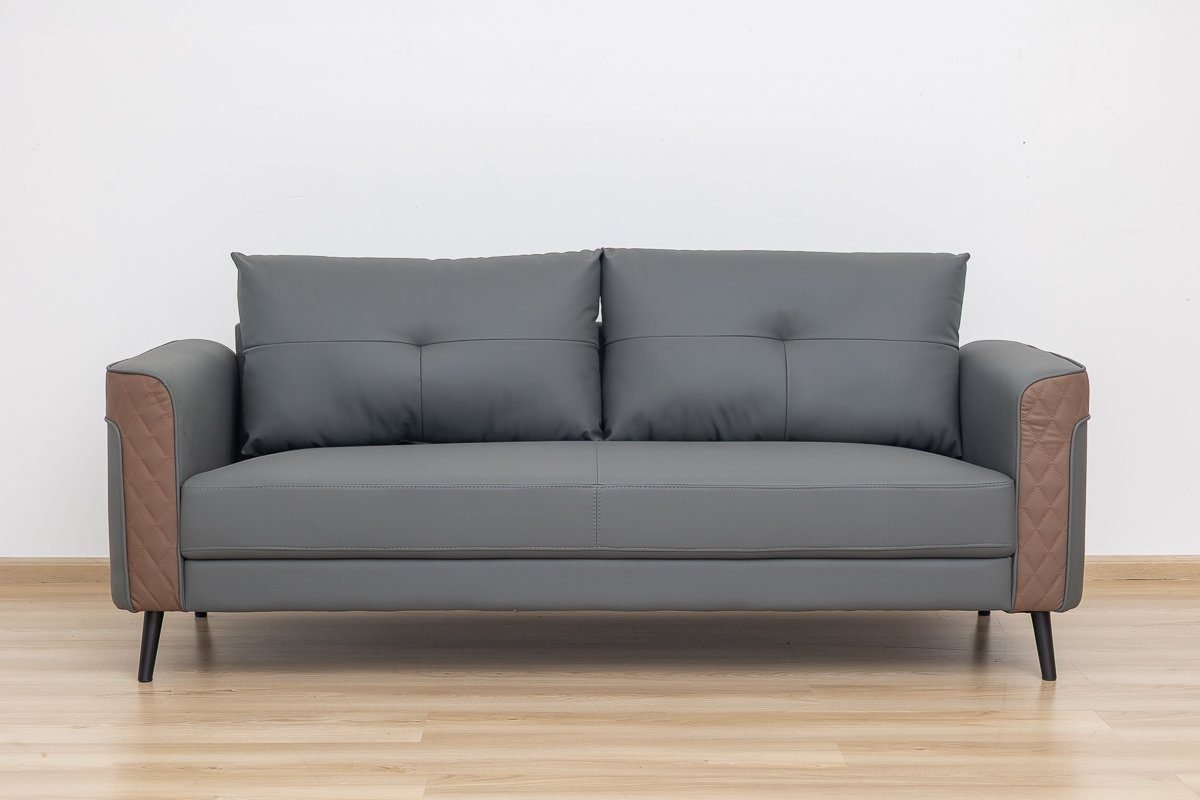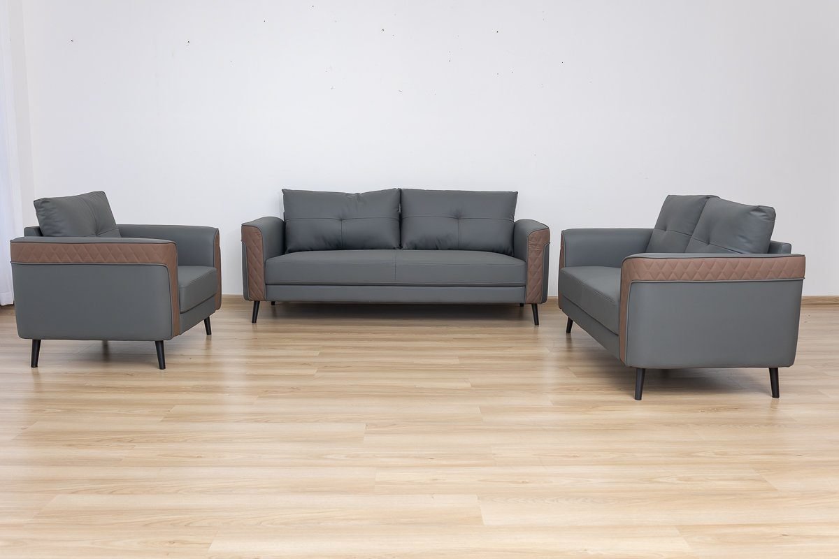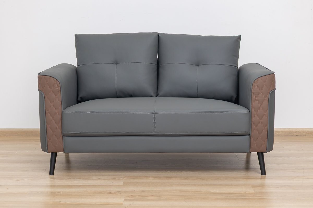 The contrasting grey and brown tones add a touch of modern elegance, making it a stylish office sofa that stands out.