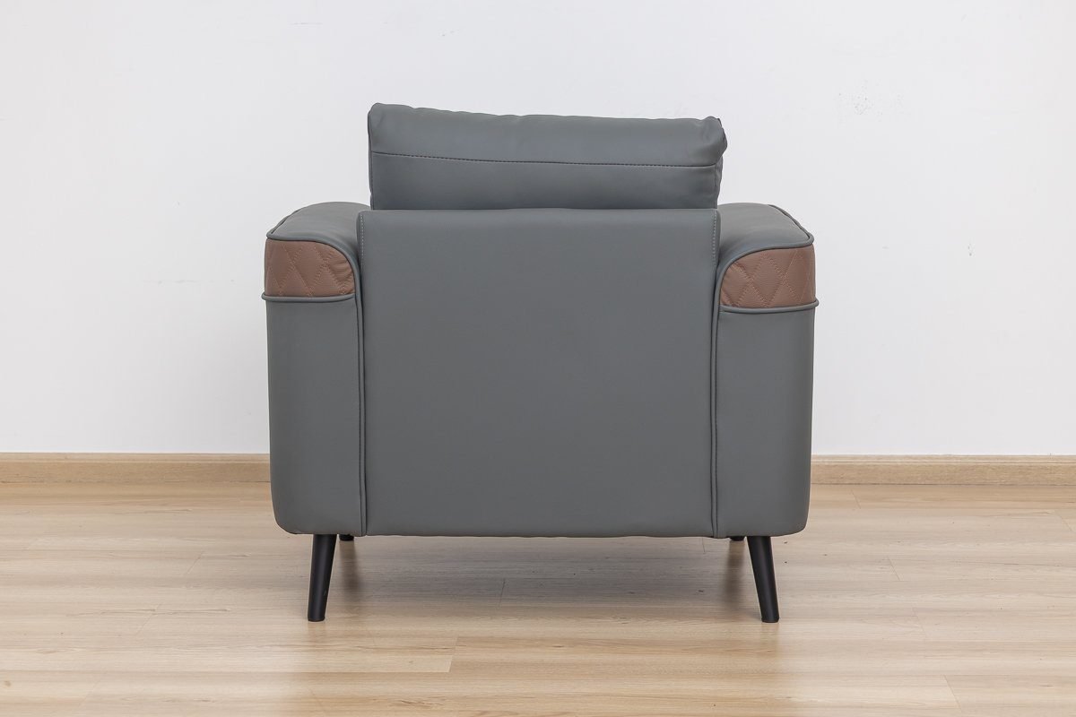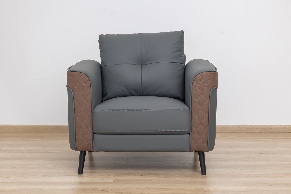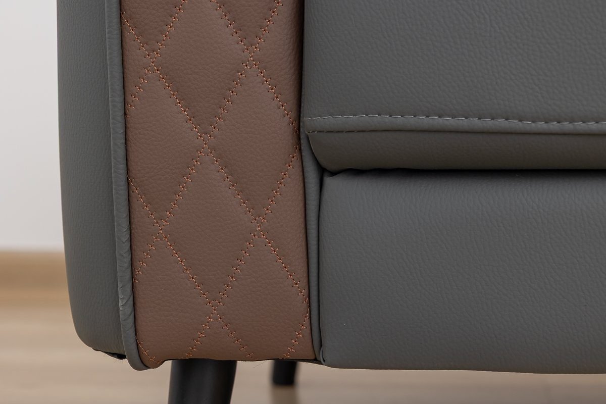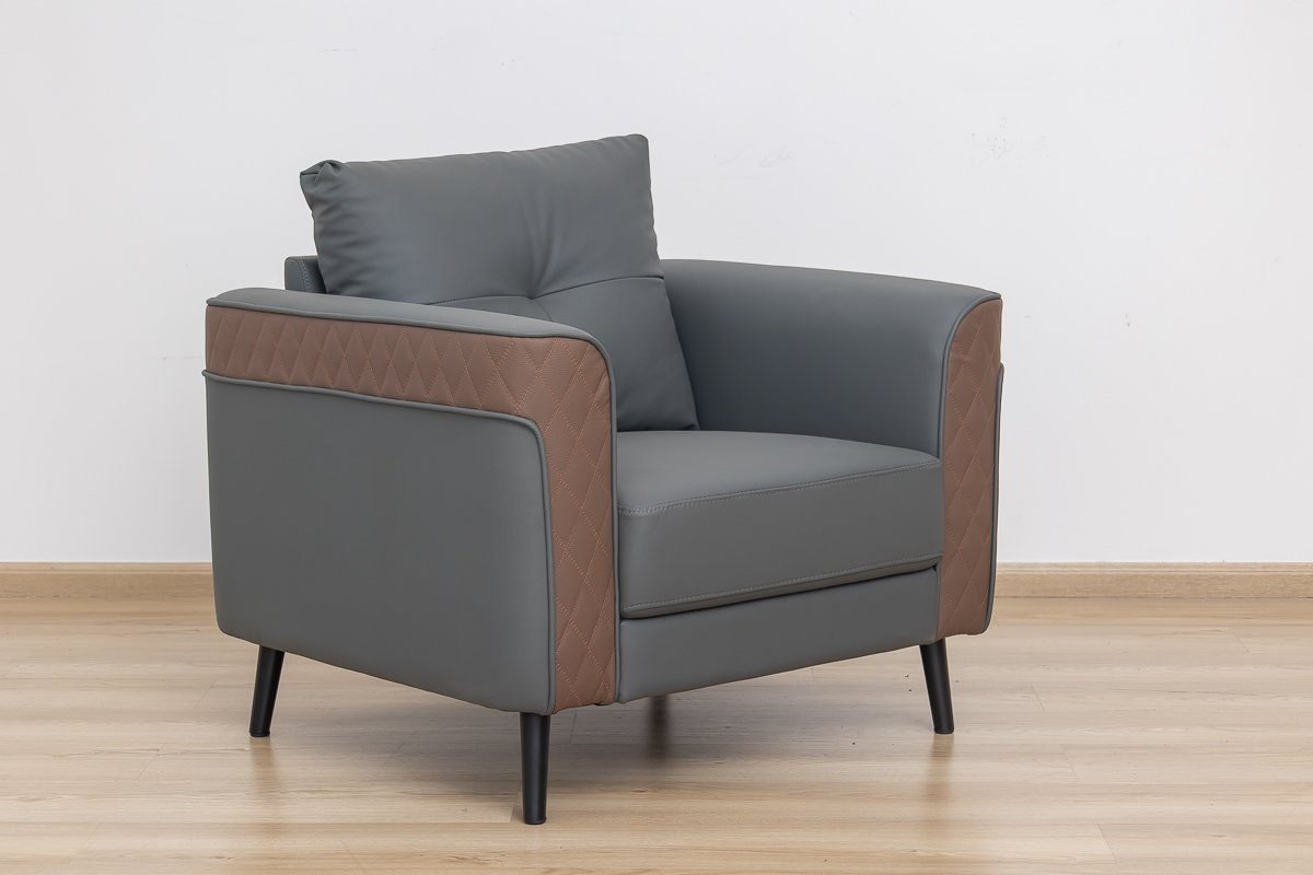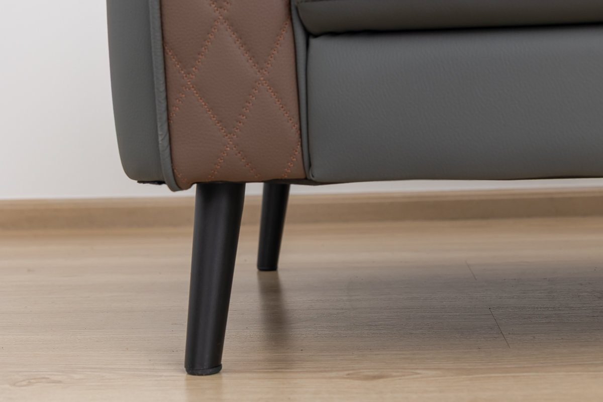Crafted with a durable hardwood frame and luxurious PU upholstery in a sleek grey and brown finish, this unique design instantly elevates any workspace.
